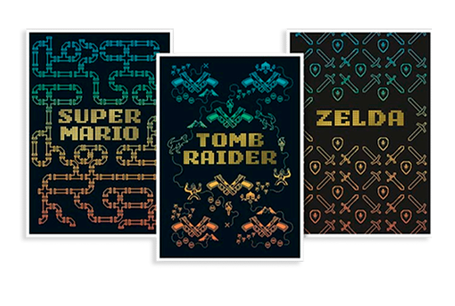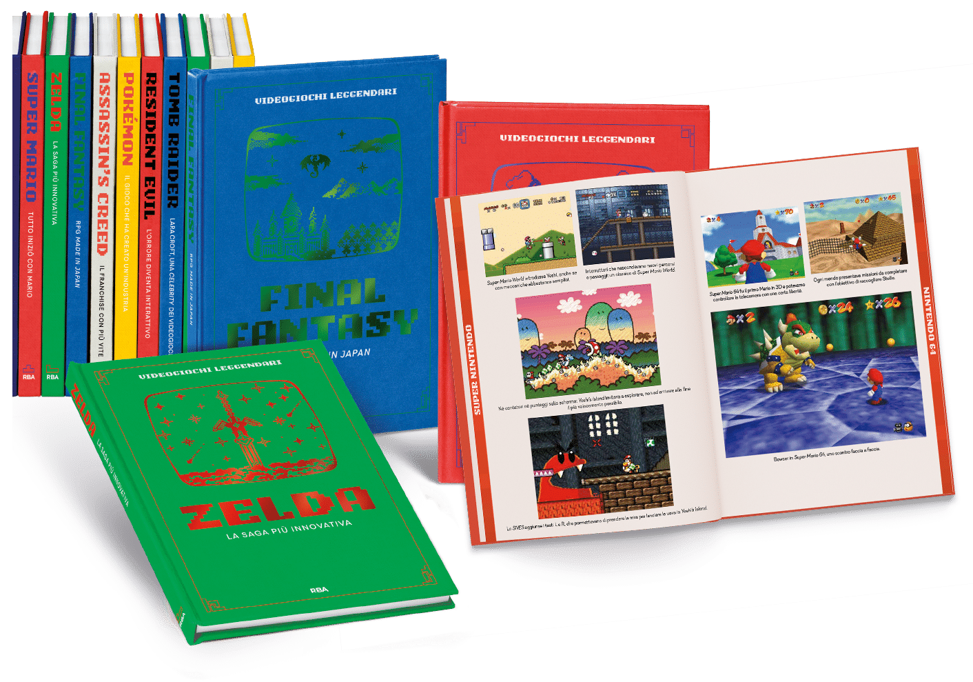 Tre fantastiche illustrazioni create in esclusiva per la collezione VIDEOGIOCHI LEGGENDARI, ispirate a tre grandi saghe della storia del videogioco: Super Mario, Zelda e Tomb Raider.